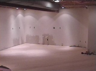 the use of the rotary laser level (yellow) on its side to mark the floor