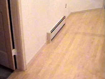Trim molding, casing, doors hung, Radiators trimmed in smooth wooden end-caps. First official party